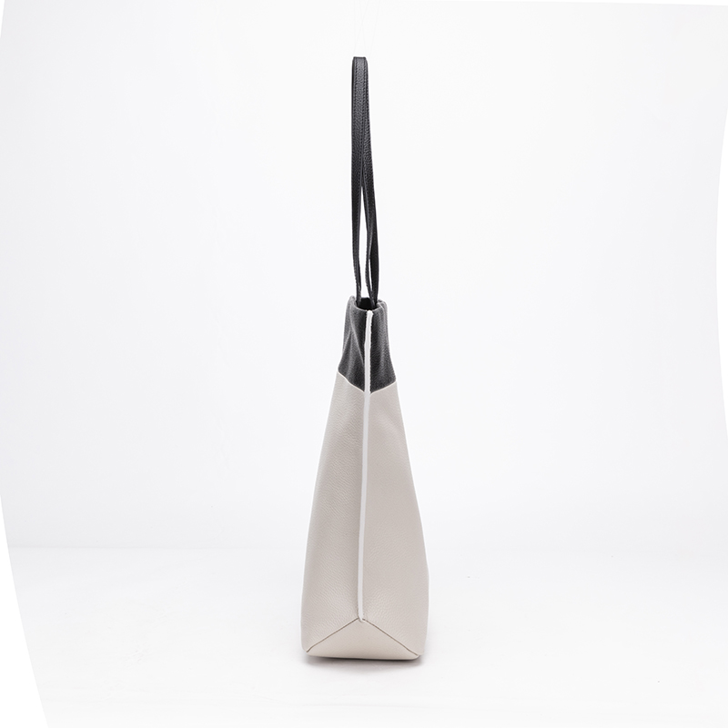 This genuine leather tote was made of 100% Cow leather outside and cotton lining inside .The design was inspired by the gift bag.Simple and popular for ladies. Of course , this bag is custom item, you can select the original color as the picture , also ,we can custom it with other colors and with your brand name .The minimum order quantity is 100 pieces per color per style if with genuine leather .
